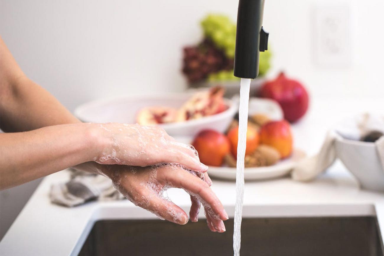 Clean your hands before touching or eating food. Clean them after you use the bathroom, take out the trash, change a diaper, visit someone who is ill, or play with a pet.