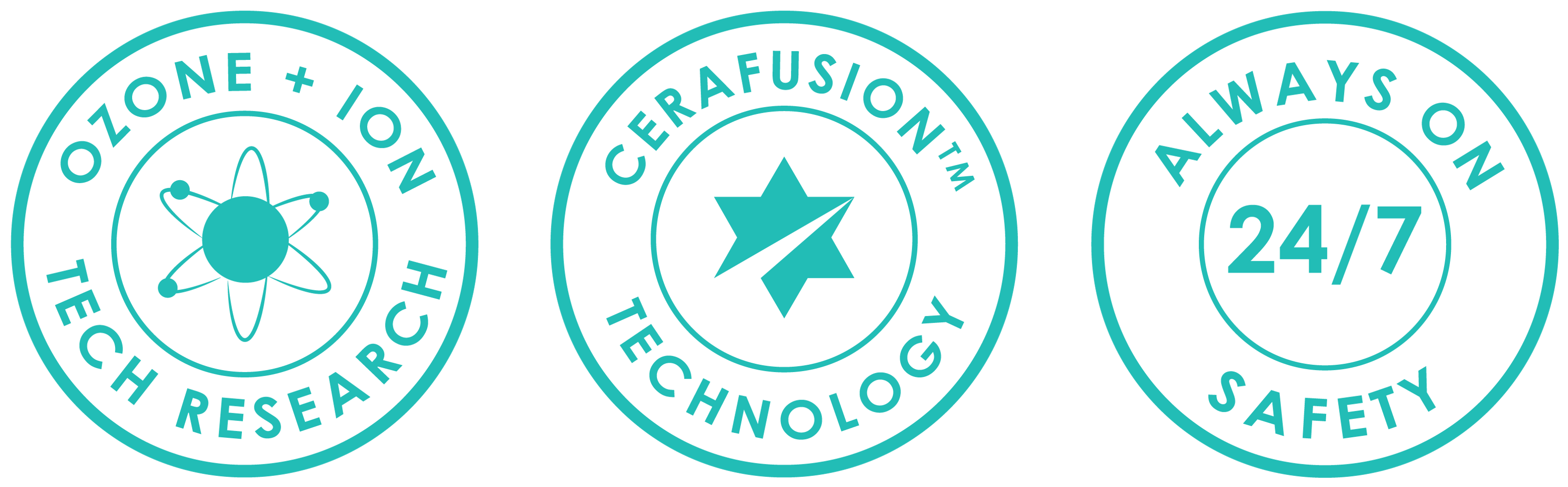 Medklinn’s patented Cerafusion™ Sterilization Technology replicates nature in the sterilization process producing active oxygen – a combination of low-level ozone (0.05ppm – 0.1ppm ambient level) and negative ions. Active oxygen is scientifically proven to eliminate over 99% of viruses, bacteria, allergens, mould, bad odour and other toxic substances. It is chemical-free, effective, efficient and safe.