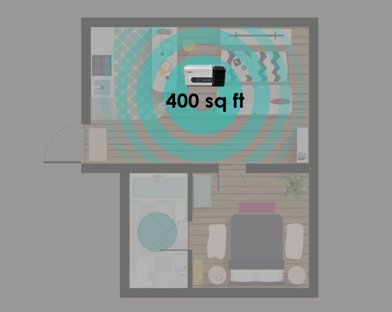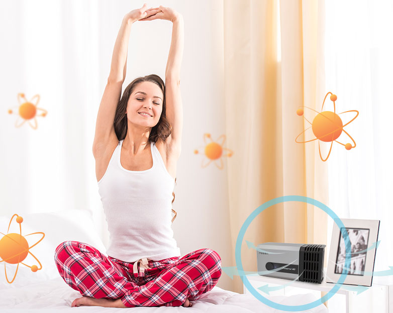As Active Oxygen fills up your living space, it sterilizes your air and especially the surfaces – eliminating allergens, bad odours, bacteria, viruses and moulds on your beds, curtains, sofas and carpet.