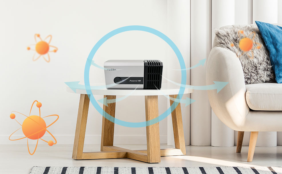 Medklinn透过使用活氧填满您的生活空间而有效地帮您杀菌消毒。当所有门窗全天关闭时,它的性能最佳,以保留活氧于室内并防止外来污染物的入侵。